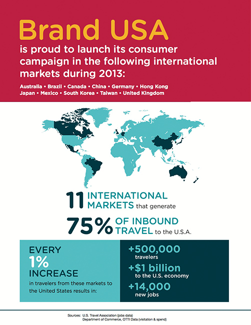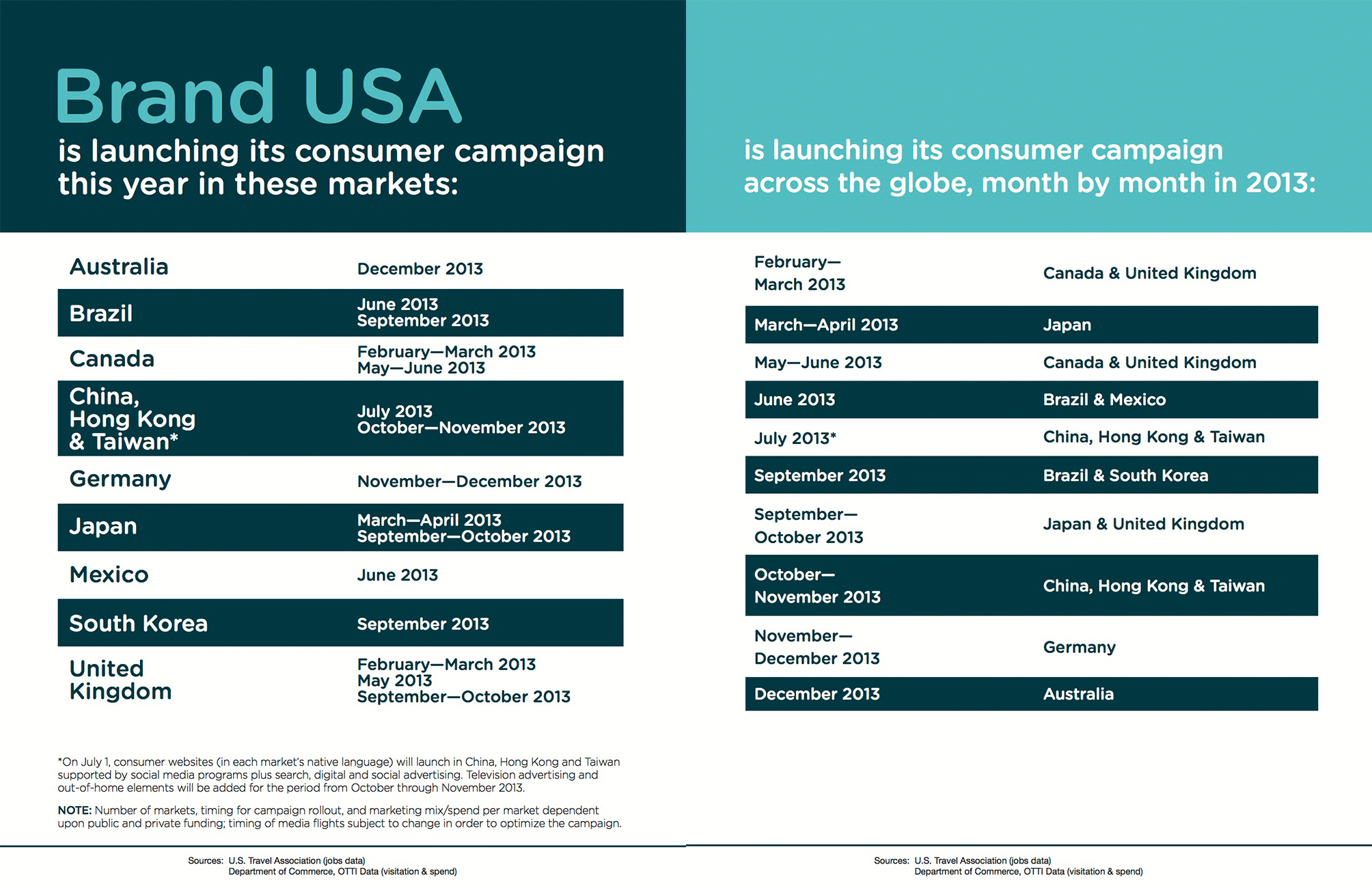 Brand USA is launching the consumer campaign in 11 international markets during 2013 More Consumer Campaigns Positioning See the Campaign Market Launches Campaign Success Co-Op Opportunities Zoom Slide Show Show All Pages Positioning See the Campaign Market Launches Campaign Success Co-Op Opportunities