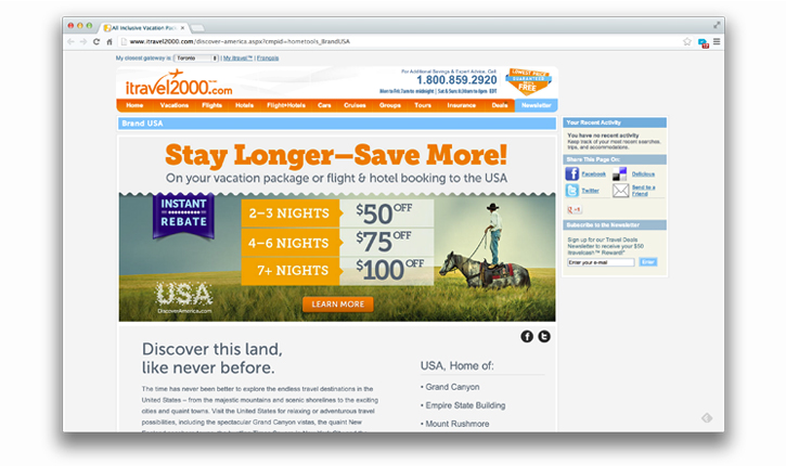 Co-Op Programs include publisher programs with online travel agents (OTAs) and print publications "Essentially America" and "Shop America," innovative digital advertising with Google Lightbox ads, multi-media promotional opportunities with iTravel2000.com, licensing opportunities to feature a customized TripTuner on your websites. Check out the TripTuner above at Tune Your Trip.
